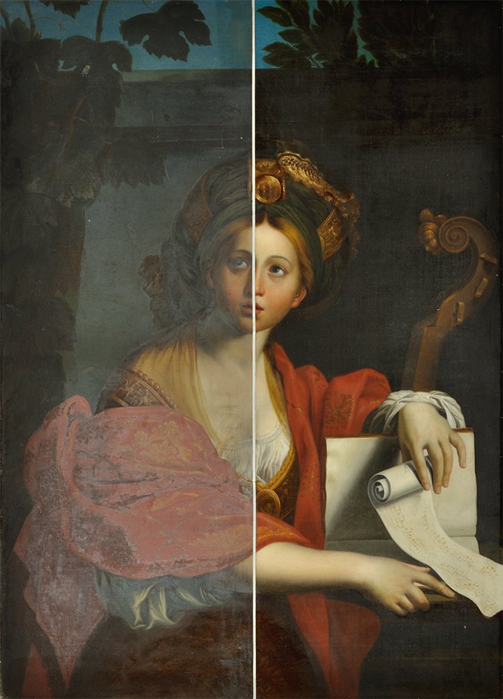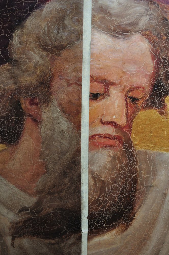 - Surface cleaning to remove grime, removal of discoloured varnish and over-paintings