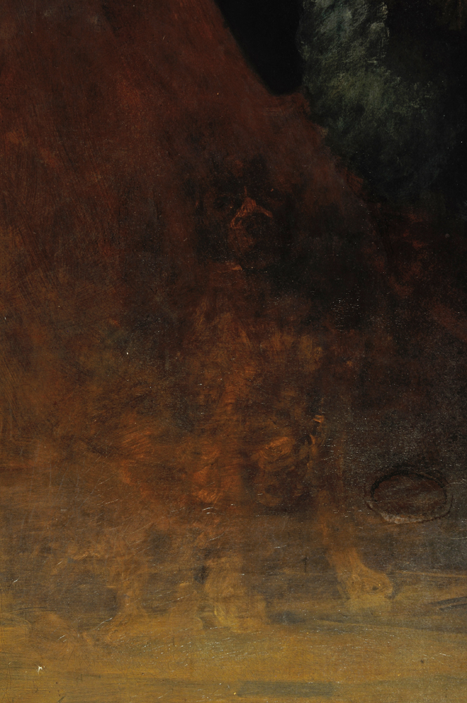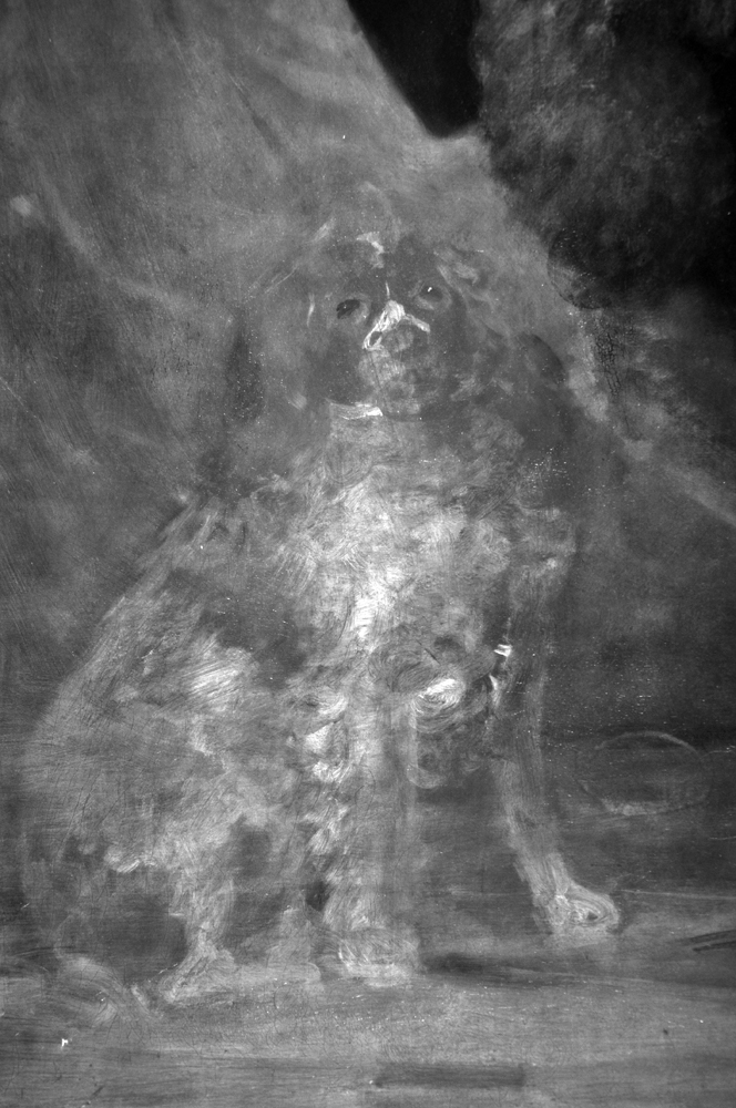 Infrared radiation could best be described as electromagnetic radiation with a wavelength longer than that of visible light spectrum. The infrared examination technique detects highly absorbing carbon-based materials such as graphite, charcoal and ink. This examination enables the conservator to determine in a non-destructive manner what lies beneath the paint layers, in particular the underdrawing or outline of the painted composition drawn by the artist on the ground as a guide. Infrared light partly passes through the upper paint layers of the painting. The factors determining the permability of the infrared radiation through the painting layers are absorption and reflection back to the camera by the carbon present in the underdrawing. However, the thickness of the painting layer and its particular chemical composition, type of grout, oil and water binders, pigments and fillers, have also influence on the satisfactory results of the examination.